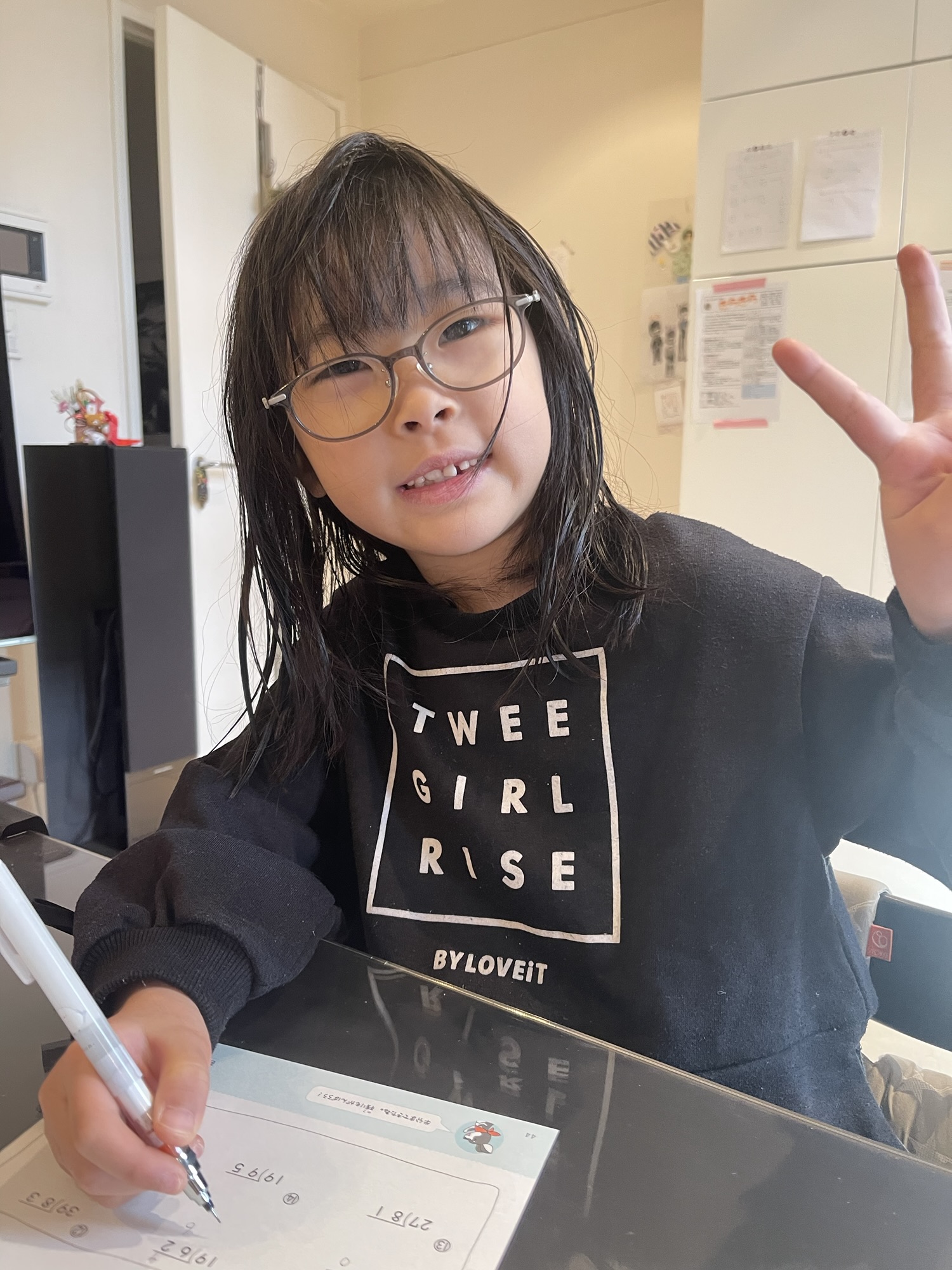 【朝学習】起床7:30。かけ算とわり算の復習。公文算数D200。公文国語DI 181〜190b。