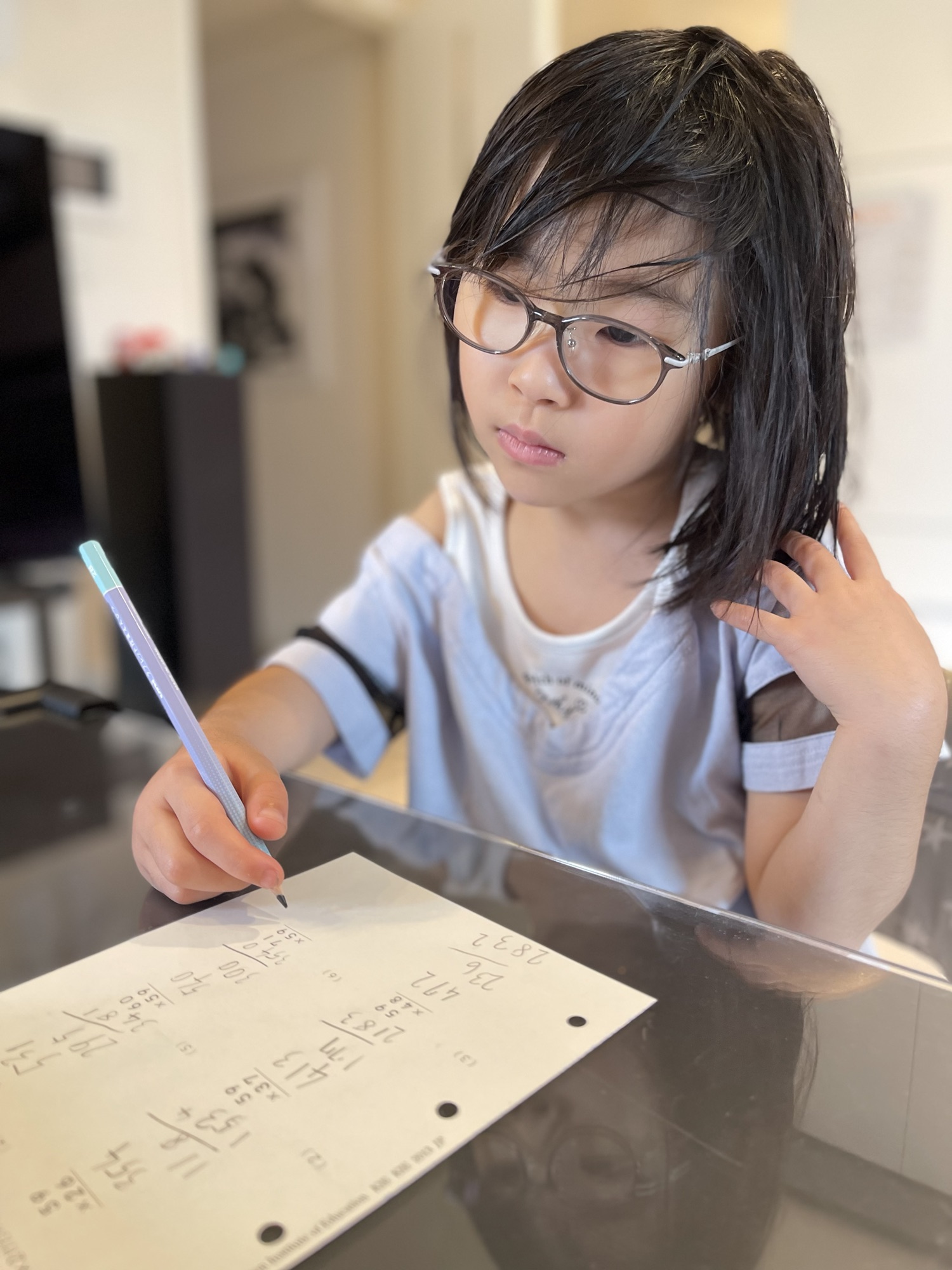 【朝学習】起床7:00。公文国語CI 120。引き算とかけ算のテキストとプリント。公文算数D37&38。