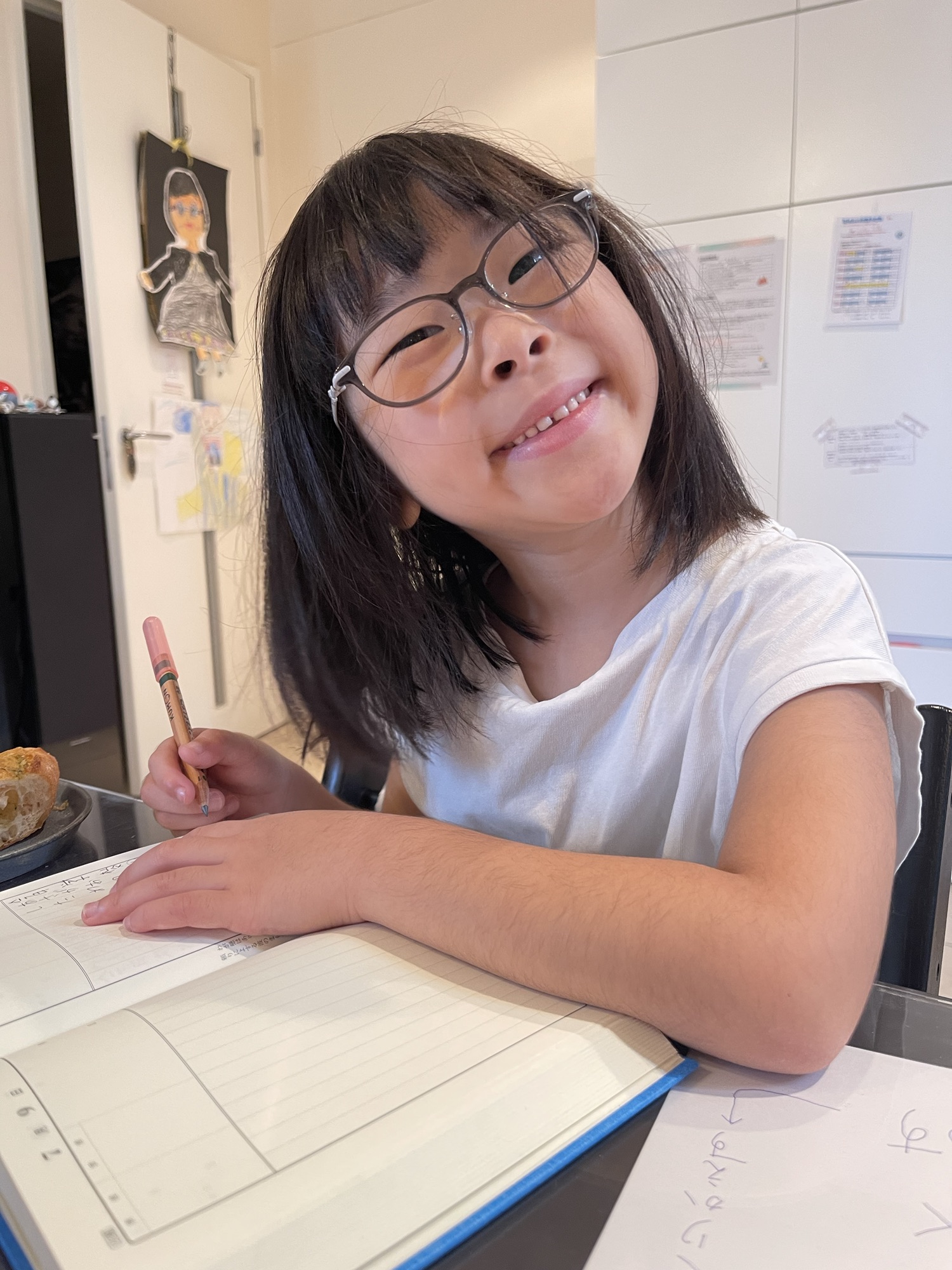 【朝学習】起床6:30。LTE宿題単語読む練習。割り算の筆算『たてる→かける→ひく→おろす』をおしえて、公文算数D68のみ。