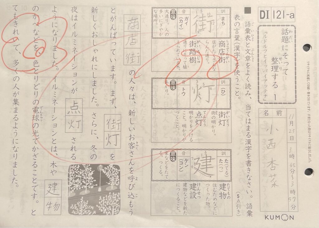 【朝学習】起床6:35。公文国語DI 135〜140。算数までは手が回らず。 -