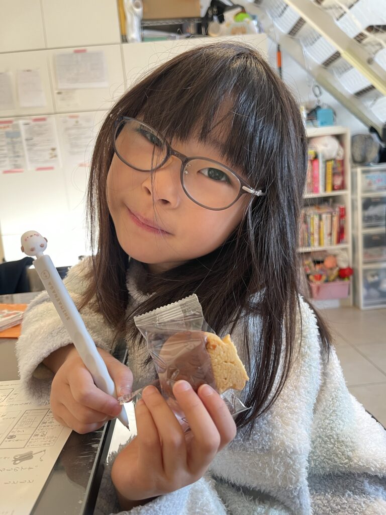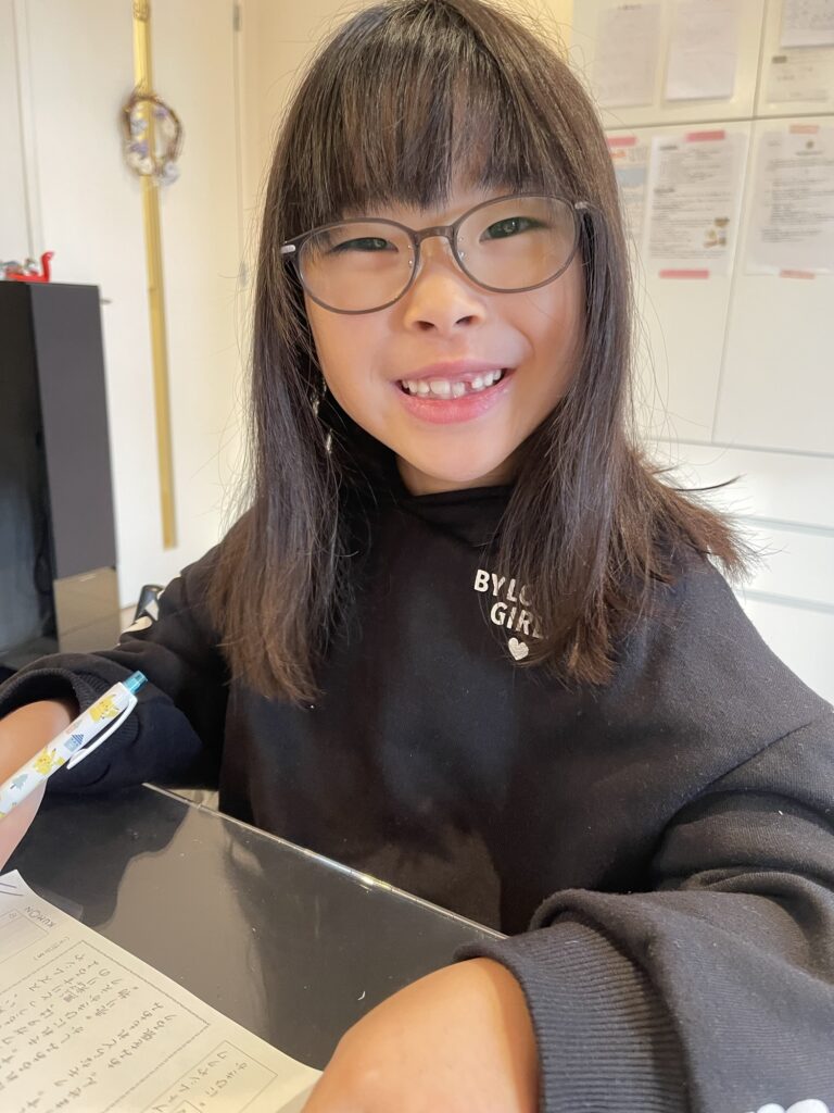 【朝学習】起床7:10。公文算数E 9,10。約分の追加プリント。公文国語DⅡ 42〜45。 自撮りだよー -